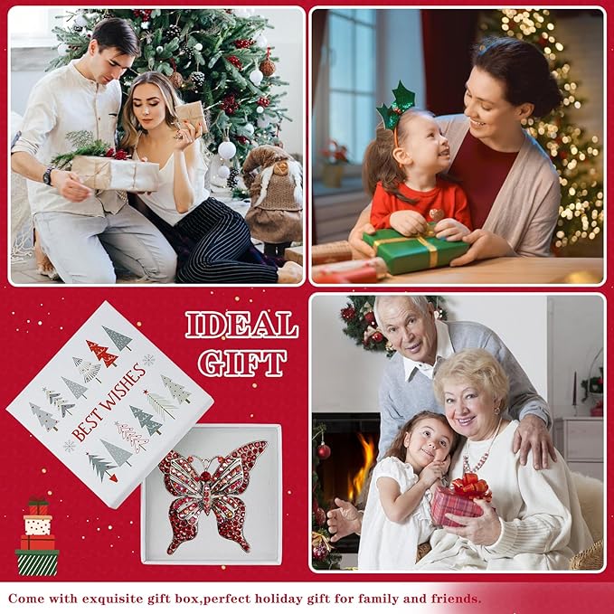 - 【Material】: Red butterfly keepsake ornaments for Christmas trees are made of quality metal and rhinestone, which is bright color, lightweight and weather resistant, perfect butterfly ornament for Christmas tree decorations.