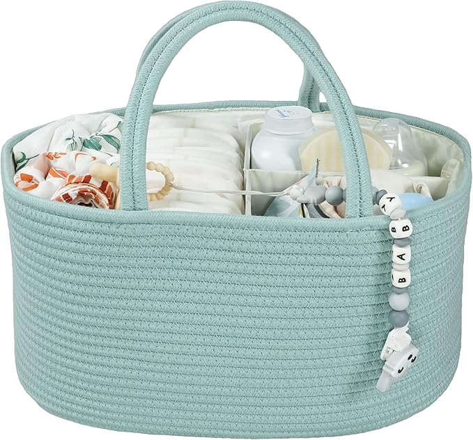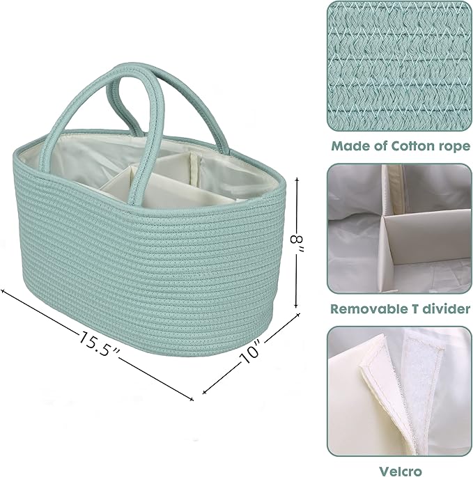 Large Baby Diaper Caddy Organizer for Girl Boy Rope Nursery Storage Bin Basket Portable Holder Tote Bag for Changing Table Car Travel Baby Shower Gifts Newborn Essentials Registry Must Have Green