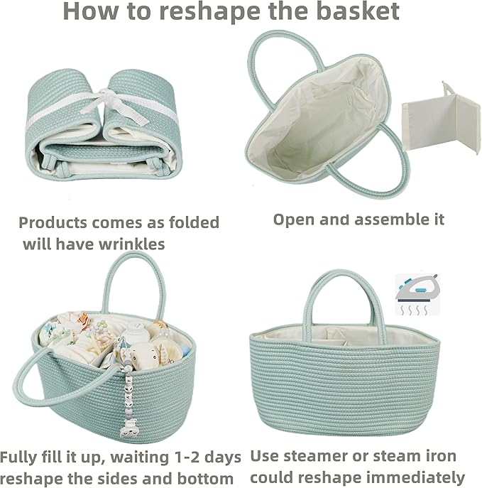 - Great Baby Gifts: This unisex diaper basket organizer is a perfect Newborn gifts as it Looks perfect on dresser top, next to diaper pail, bedside, crib and etc. This diaper basket caddy is not only beautiful but also practical. Could fill it with diapers, wipes or anything else new baby stuff as gift basket. Baby caddy is one of newborn must have items.