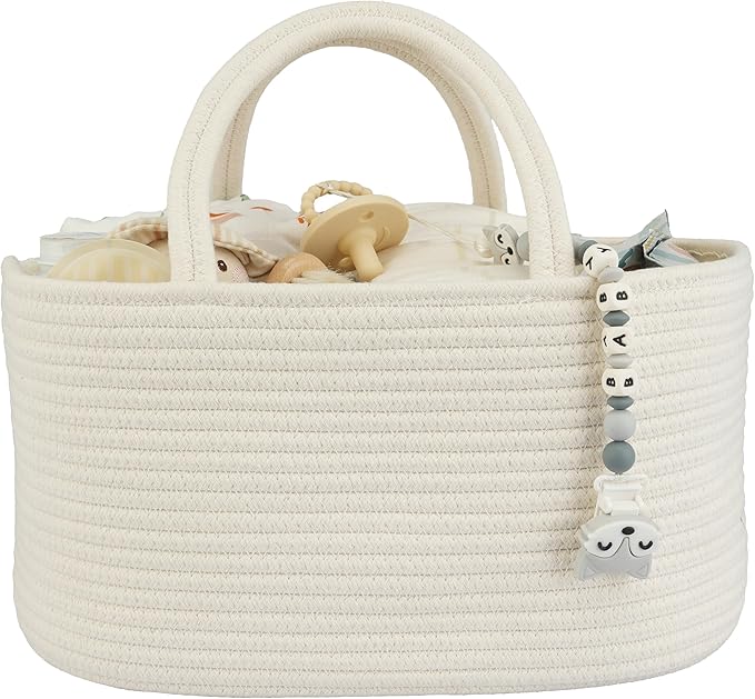 Large Baby Diaper Caddy Organizer for Girl Boy Rope Nursery Storage Bin Basket Portable Holder Tote Bag for Changing Table Car Travel Baby Shower Gifts Newborn Essentials Registry Must Haves White