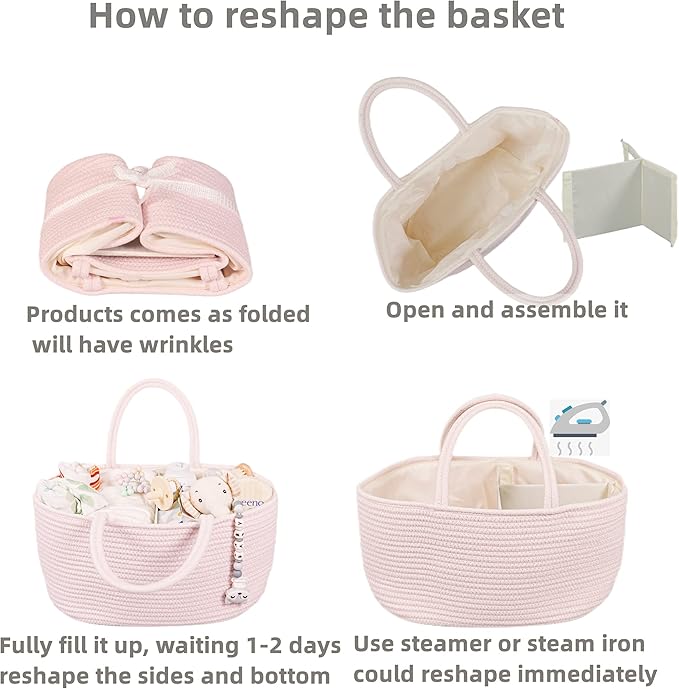 - Great Baby Gifts: This unisex diaper basket organizer is a perfect Newborn gifts as it Looks perfect on dresser top, next to diaper pail, bedside, crib and etc. This diaper basket caddy is not only beautiful but also practical. Could fill it with diapers, wipes or anything else new baby stuff as gift basket. Baby caddy is one of newborn must have items.