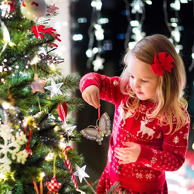 - ❤️【Material】: Butterfly christmas hanging ornaments is made of high-quality metal, 3A grade quality rhinestone, and outstanding engrave craftsmanship.