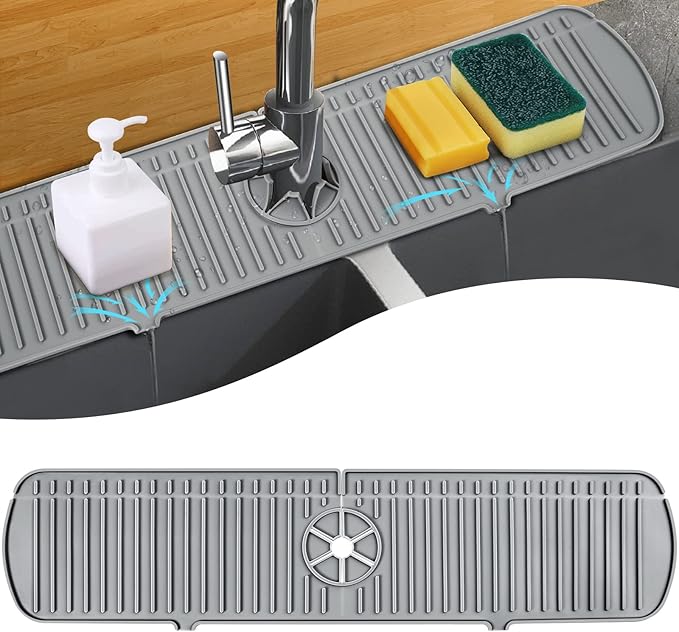 - 💪【KEEP YOUR COUNTERTOP DRY】 Silicone faucets pad new designed for faucet splash with the draining, upgrading your kitchen sink & bathroom countertop in an effort-saving way! This means never gets soggy, or any water spots by the faucet. You don't need to worry about the water staying on the mat or counter.