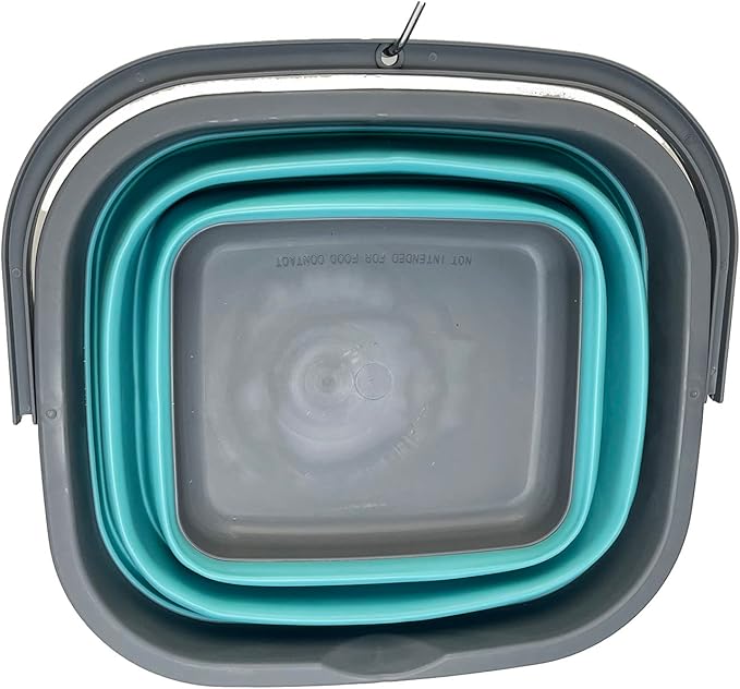 SAMMART 10L (2.6 gallon) Collapsible Rectangular Handy Bucket (Alloy Grey + Crystal Blue (Set of 2))