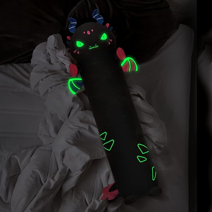 - Glow in the Dark:This cute dinosaur body plushie is not only a toy, it also gives off a warm glow in the dark. We offer you not only a pillow, but also the best lumbar body pillow when you sit on the sofa, as well as the most comfortable sleeping pillow.