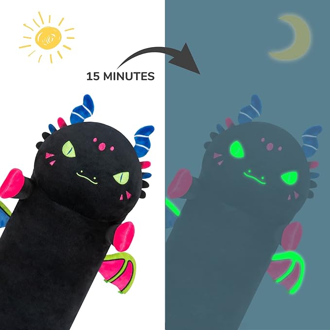 Long Dragon Plush Body Pillow, 44” Luminous Light Up Dinosaur Stuffed Animals Kawaii Night Light Plushies Pillow Glow in The Dark Gift for Girls Boys