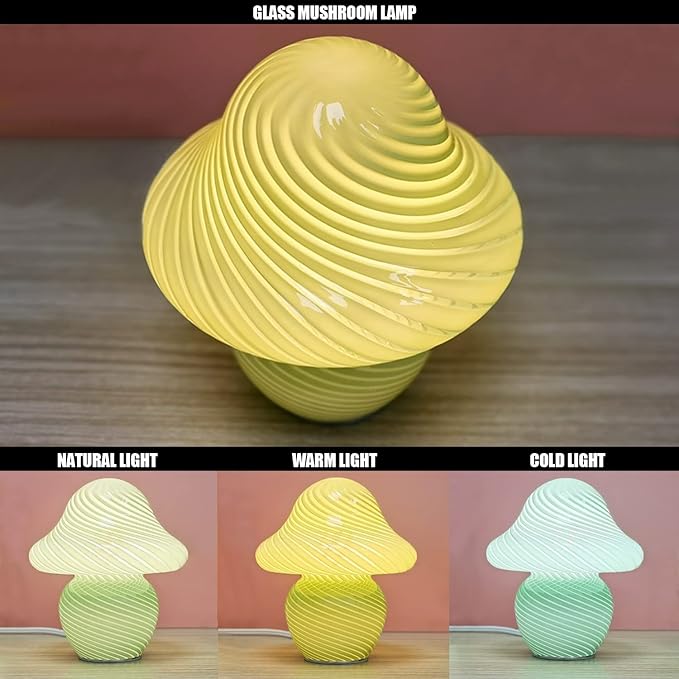 - 【Easy to use, suitable for multiple scenarios】:110V American standard plug, plug and play, no need to buy other transformers, simple and convenient. The wavy striped mushroom shaped lamp is beautifully designed, perfect for your bedroom, bedside, study, office, living room, sofa side.