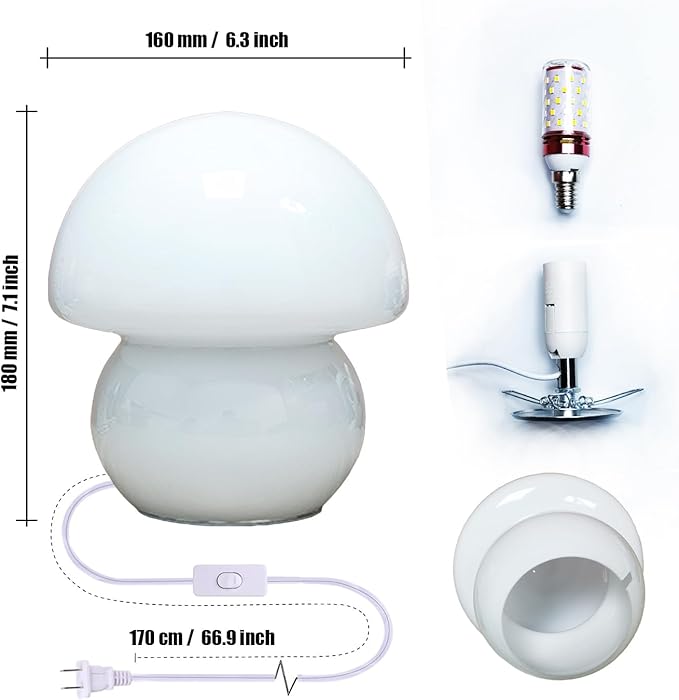 - 【Easy to clean, dust-proof design】:The glass mushroom table lamp is simple in structure, easy to operate and maintain. The one-piece closed glass design will not let dust enter the interior. The semi-circular top has a smooth appearance, not easy to accumulate dust, and easy to wipe.