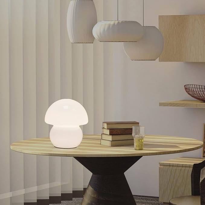 - 【Unique Hand-Blown Glass Lamp】:Made from glass with a timeless silhouette. It could be as a decorative mushroom night light but also works well as a modern glass lamp on the sideboard, bedroom, living room, dining room, coffee shop, bar, etc. Excellent gift for Holidays, Birthday, Valentine's Day, Christmas Thanksgiving.