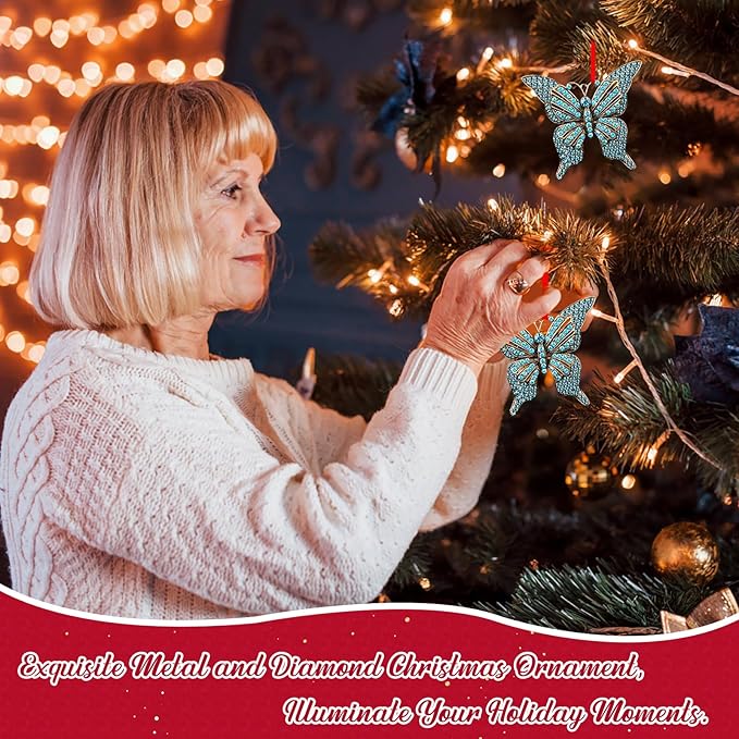 - 【Material】: Blue butterfly keepsake ornaments for Christmas trees are made of quality metal and rhinestone, which is bright color, lightweight and weather resistant, perfect butterfly ornament for Christmas tree decorations.