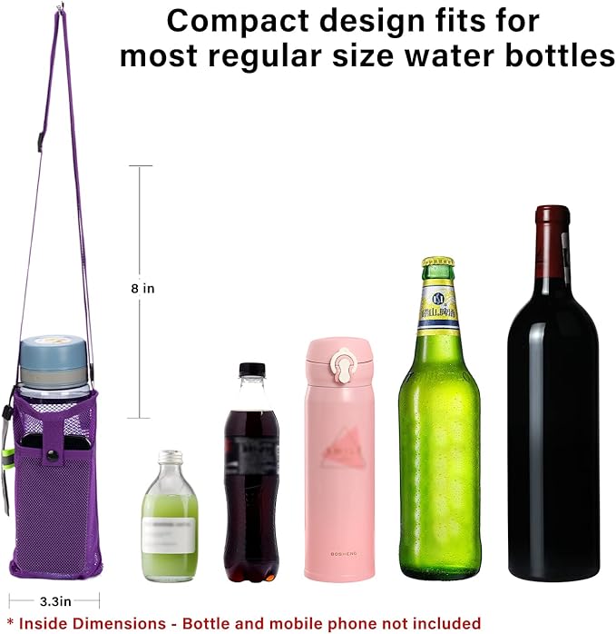 2 Pack Portable Water Bottle Bag with Adjustable Shoulder Strap - Foldable Lightweight Beach Water Bottle Sling Bag for Sports Gym Hiking Camping Walking