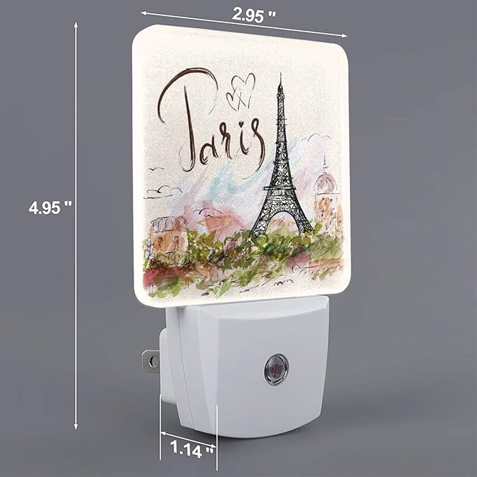 Funny Paris Eiffel Tower Plug in Night Light Plug into Wall LED Nightlight Auto Sensor Dusk to Dawn lamp for Kids Girls Room Bedroom Bathroom Nursery Kitchen Hallway Stairs Home Decorative