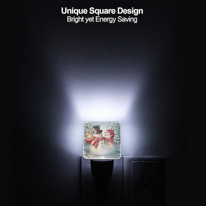 Christmas Snowman Night Light Plug into Wall Decorative Plug in LED Nightlight Auto Sensor Dusk to Dawn Decor Lamp for Kids Bedroom Bathroom Kitchen Hallway Stairs Home