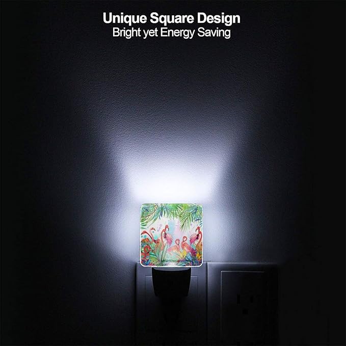 Cute Colourful Flamingo Leaves Night Light Plug into Wall Decorative Plug in LED Nightlight Auto Sensor Dusk to Dawn Decor Lamp for Kids Girls Bedroom Bathroom Kitchen Hallway Stairs Home