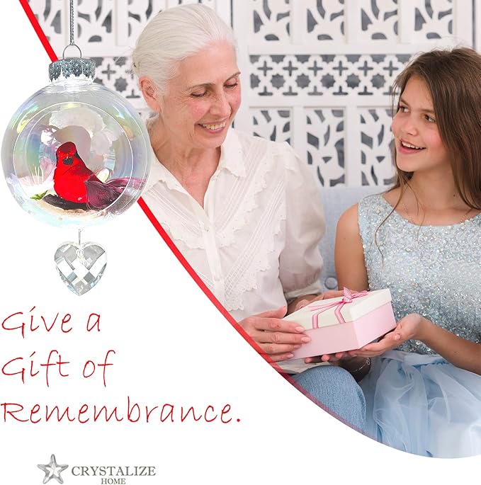 - Christmas Decor Hanging Design: This decorative cardinal decor comes with a hanging wire at the top so you can hang a red cardinal bird from anywhere in your home. The bottom of the red cardinal globes is flat and has a magnetic crystal that hangs from the bottom of the Crystalize Home ornaments. This lightweight red cardinal figurine ornament will not weigh down branches. Adding these cardinal Christmas ornaments that are amazing to your collection will be a great choice!