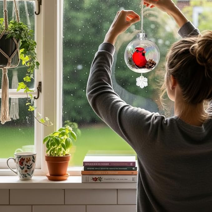 - Christmas Decor Hanging Design: This decorative cardinal decor comes with a hanging wire at the top so you can hang a red cardinal bird from anywhere in your home. The bottom of the red cardinal globes is flat and has a magnetic crystal that hangs from the bottom of the Crystalize Home ornaments. This lightweight red cardinal figurine ornament will not weigh down branches. Adding these cardinal Christmas ornaments that are amazing to your collection will be a great choice!