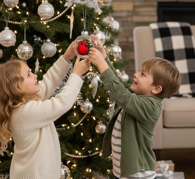 Cardinal Christmas Ornament - Handmade Shatterproof Decorations for Indoor Outdoor Xmas Tree - Clear Ball Ornaments with Magnetic Crystal - Great Gift or Stocking Stuffer for Mom, Sister, Friend