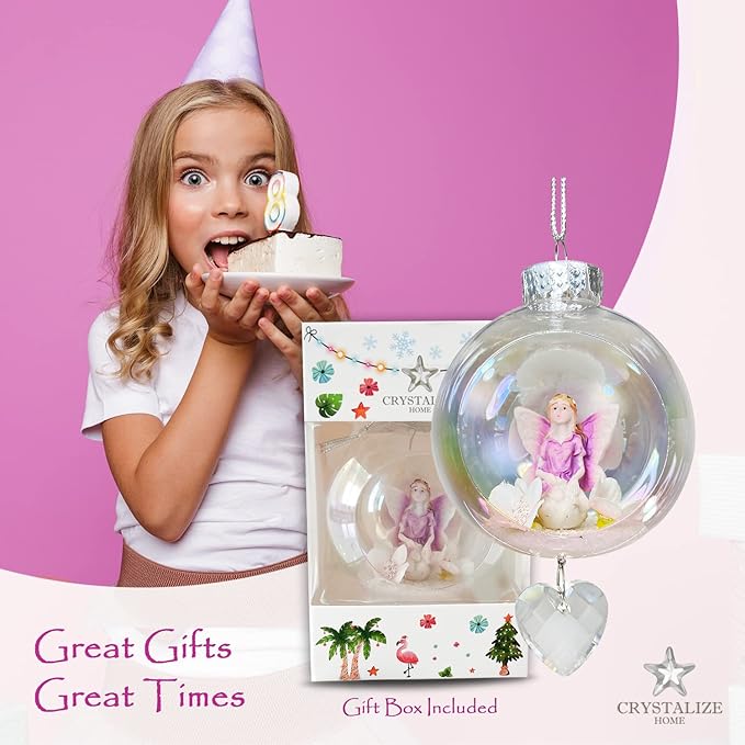 Purple Fairy Christmas Ornament - Handmade Shatterproof Decorations for Indoor Outdoor Xmas Tree - Clear Ball Ornaments with Magnetic Crystal - Great Gift or Stocking Stuffer for Mom, Sister, Friend