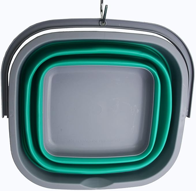 SAMMART 10L (2.6 gallon) Collapsible Rectangular Handy Bucket (Dark Grey/Bluish-Green (Set of 2))