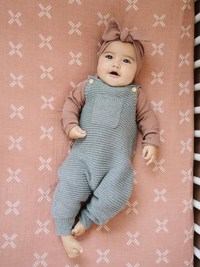 - Soft Muslin Sheets – Made with 100% Muslin Cotton, these sheets are soft to the touch and breathable, made to keep baby sleeping comfortably.