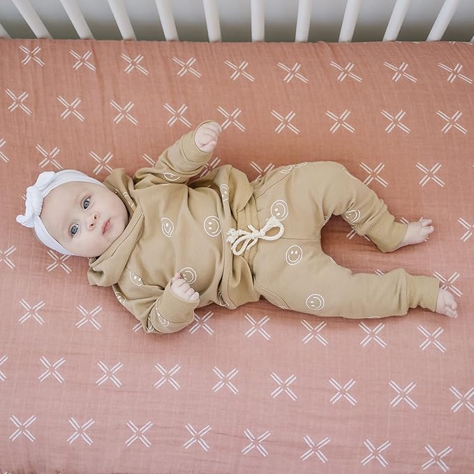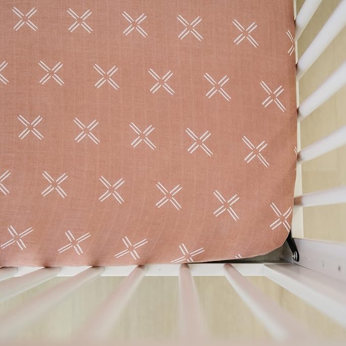 Just Peachy Muslin Crib Sheet by Mebie Baby, Soft and Breathable Bed Sheets for Babies, Modern Neutral Bedding for Cribs, Standard Crib Mattress Fitted Sheet, Great for Boy or Girl Room or Nursery