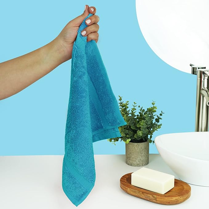 Chakir Turkish Linens |Hotel & Spa Quality 100% Cotton Premium Turkish Towels | Soft & Absorbent (12-Piece Washcloths, Aqua)
