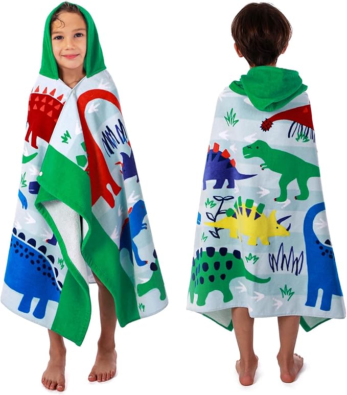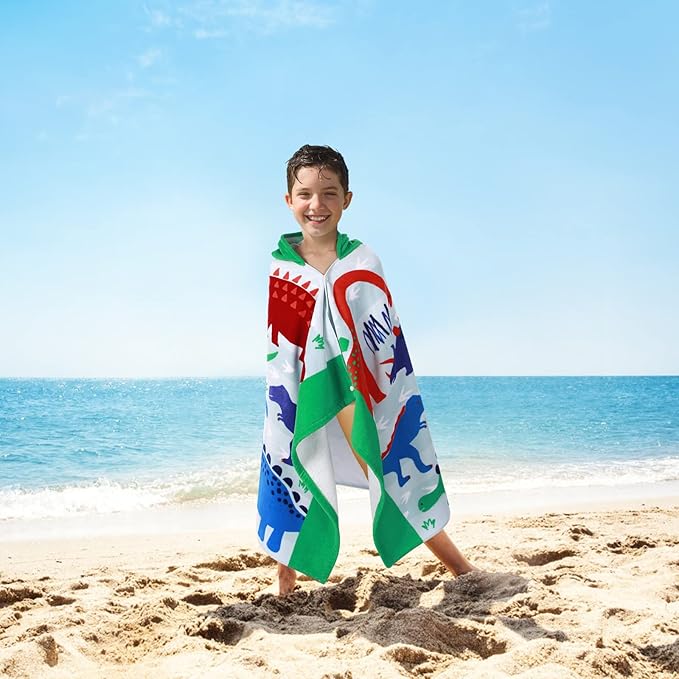 Wowelife Kids Beach Towels, Hooded Towels for Kids, Dinosaur Poncho Towel Wrap, Premium 100% Cotton Soft and Breathable, Extra Large 50"x30", Multi Use for Bath Pool Beach Swim Bathroom