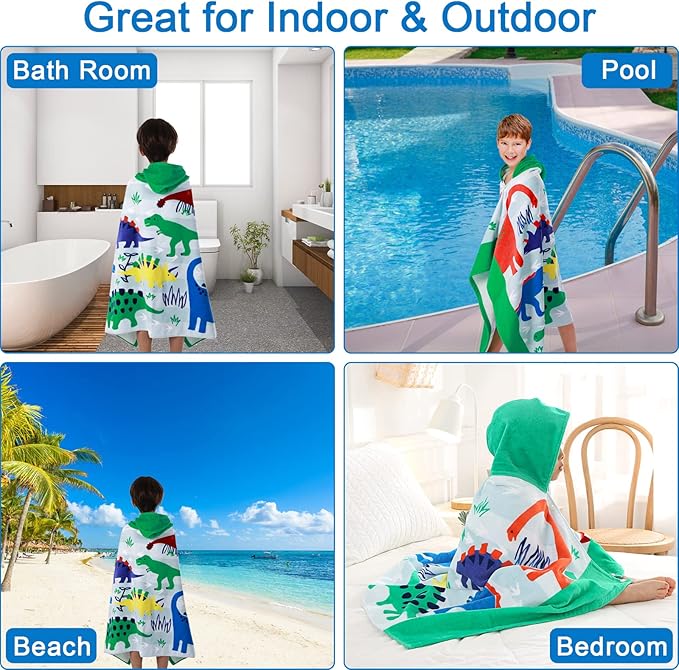 - 【Multi-purpose & Size】The hooded towel has an unfolded size of "30 x 50"inch, which is the perfect bath towel for children. In the summer, whether you're taking your kids to the beach, swimming in the pool, or camping, this poncho towel wrap is fine for use in all of these indoor and outdoor locations.
