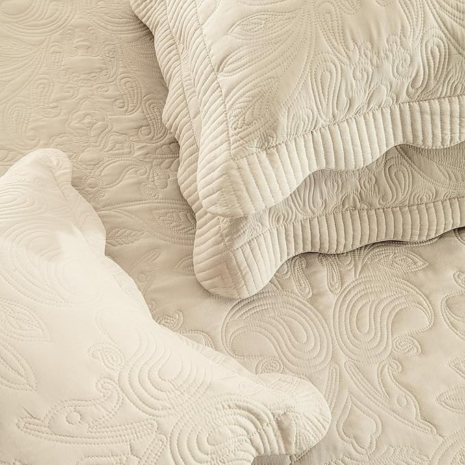 - 🌲🌲Aesthetic & Functional 🌲🌲HoneiLife Extra Large Quilt Set cover your bed better,Reversible,Classical Paisley Pattern,Solid colors are easy to match your room,Embroidered bedspread sets sewed with neat stitches, Extra Throw Pillow Cover,Pair with delicate and lovely fan edge, enhance your bedroom neatly and attractively