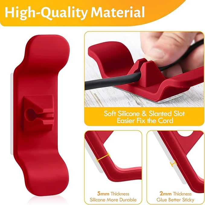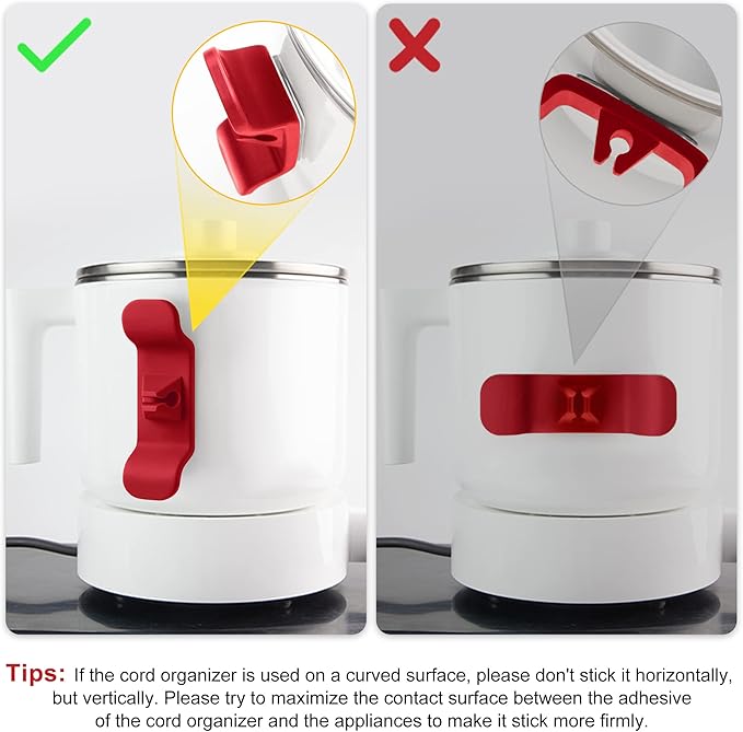 • PREMIUM MATERIAL: Each appliance cord organizer stick on is made of high quality rubber, durable and deformation resistant. The sticky adhesive pad is non-toxic, odorless, and will not leave marks on kitchen appliance surface