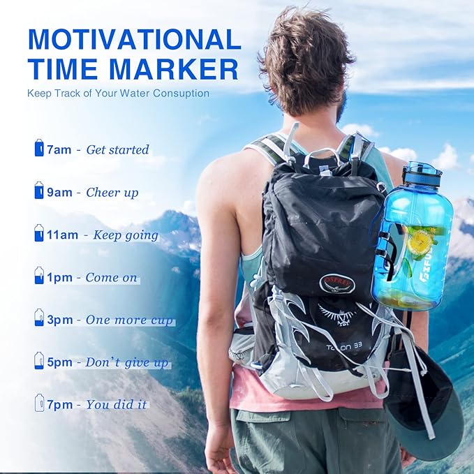 - Motivational Time Marker - Our bpa free 3 liter water bottle comes with time markings and inspirational quotes on the side to motivate your daily water intake and stay hydrated for a certain period of time and stay on track meet your health and fitness goal