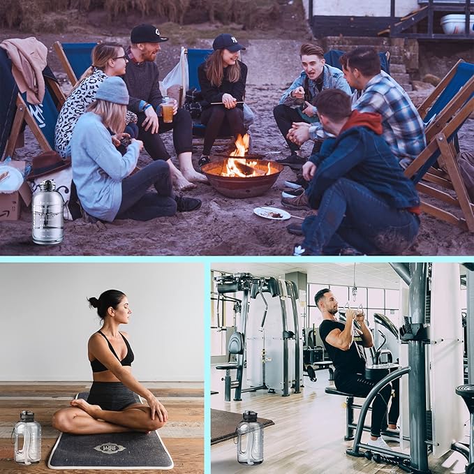 - Comfortable Design - The big water jug with flip top lid made easy to drink, the high-quality nylon strap & humanized handle makes it easy to carry. The wide mouth allows you to add ice cubes, fruits and others to catering your tastes