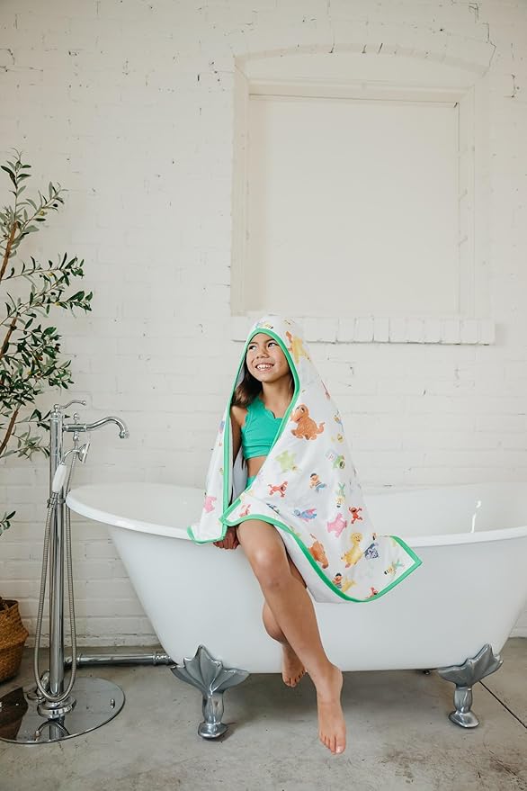 Copper Pearl Hooded Bath Towels Premium Knit/Terry Cloth Toddler Towels with Hood, Pockets, and Cool Designs - Great to Gift and Make Bath Time Fun - Big Kids Hooded Towel, Sesame Friends