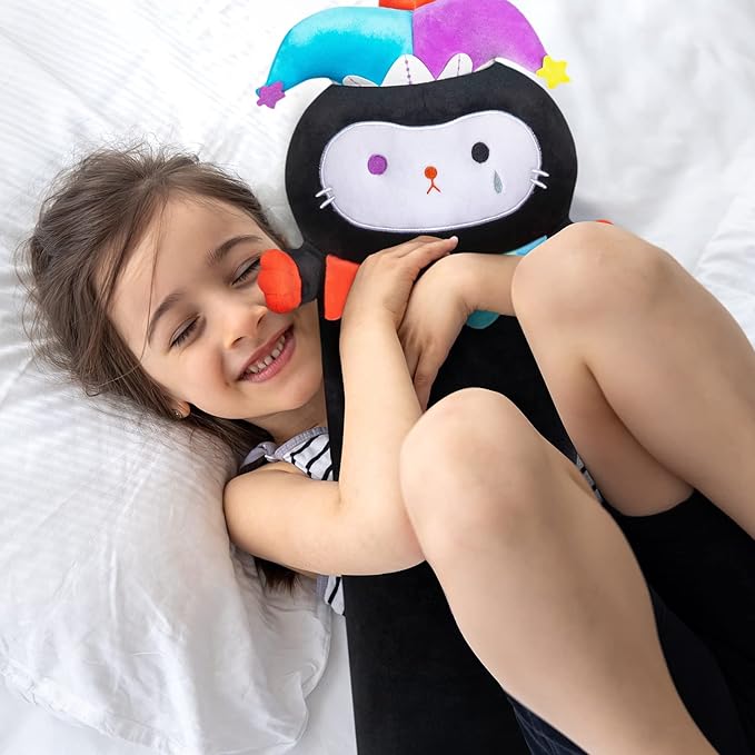 Long Cat Plush Body Pillow, 28” Cute Clown Axolotl Stuffed Animals Kawaii Soft Plushies, Joker Axolotl Plush Pillow Doll Toy Gift for Girlfriend