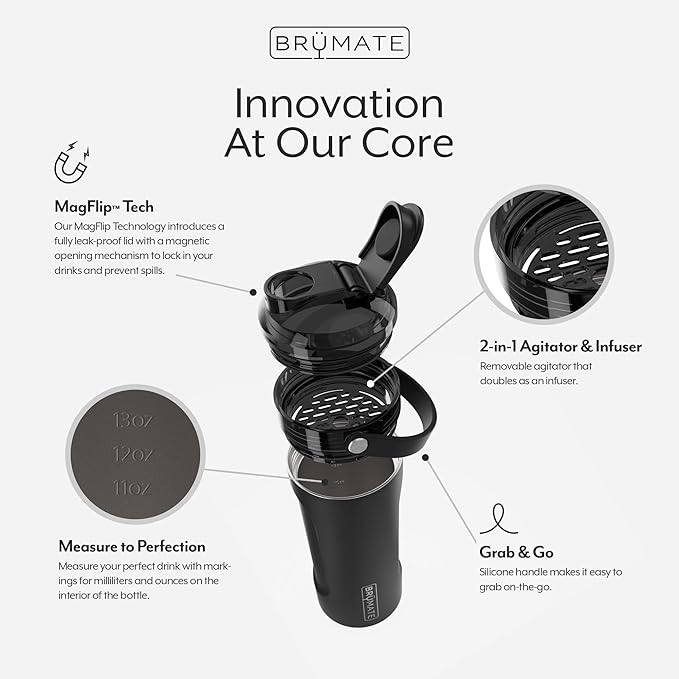 - PACKED WITH FEATURES: from it's MagFlip lid and removable agitator that doubles as an infuser, to its easy carry handle and non-slip base, the attention to detail and design makes this the most unique (and best looking) shaker in existence.
