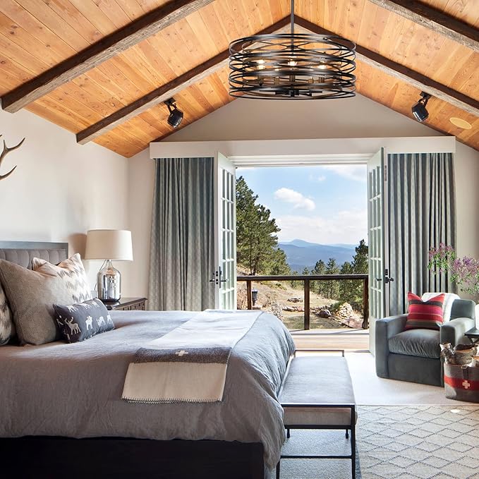- Design: Kitchen light fixtures are made by highly skilled craftsmen. The classic combination of retro wood texture and black, the stylish retro double-layer drum frame design, makes this farmhouse kitchen lighting full of rustic retro atmosphere. Perfect for dining room, living room, kitchen island, entryway, hallway, foyer, etc.