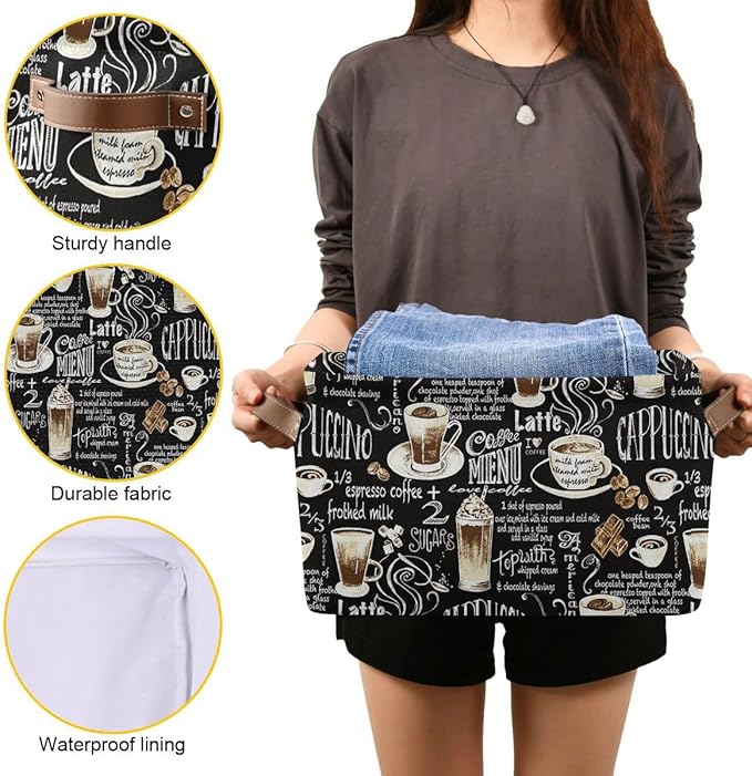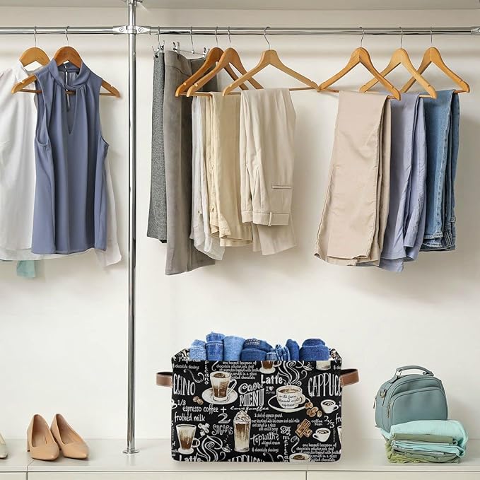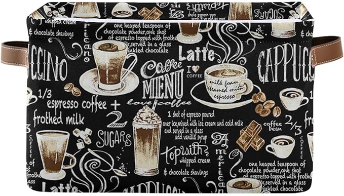 Wamika Black Coffee Beans Storage Basket Fabric Laundry Baskets Cappuccino Latte Chocolate Cocoa Storage Boxes Organizer Bag for Baby Cloth Dog Toy Book Storage Cubes Shelf Closet Bins 16x12x8 Inches