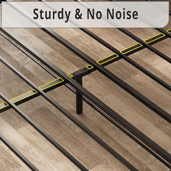- Sturdy and Stable: Heavy-duty metal slats reinforce the sturdiness and durability of the platform queen bed structure. Providing optimum support for all types of mattresses without the use of a box spring