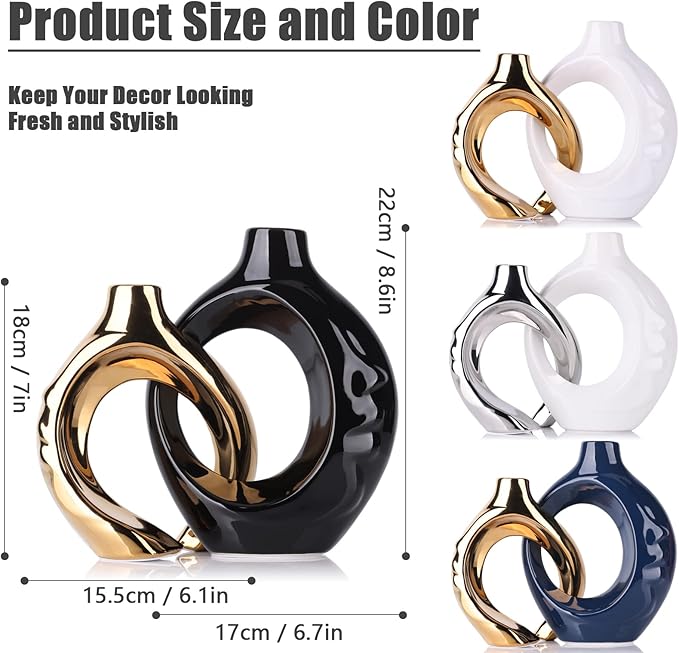 - 【Elegant Decorative Vase for Living Room】All these decorative vases centerpiece for flowers are carefully made by hand with selected ceramic, so you will see how smooth and exquisite the surface and how beautiful the details are. The snuggle ceramic has a beautiful shine than changes with the viewing angle, it is also a great match with all kinds of home decorating styles.