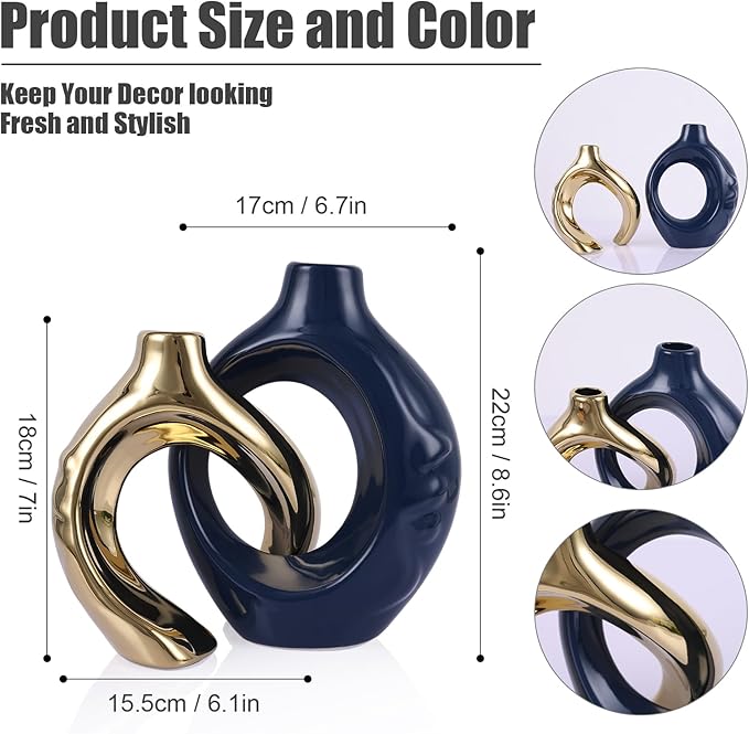 - 【Elegant Decorative Vase for Living Room】All these decorative vases centerpiece for flowers are carefully made by hand with selected ceramic, so you will see how smooth and exquisite the surface and how beautiful the details are. The snuggle ceramic has a beautiful shine than changes with the viewing angle, it is also a great match with all kinds of home decorating styles.