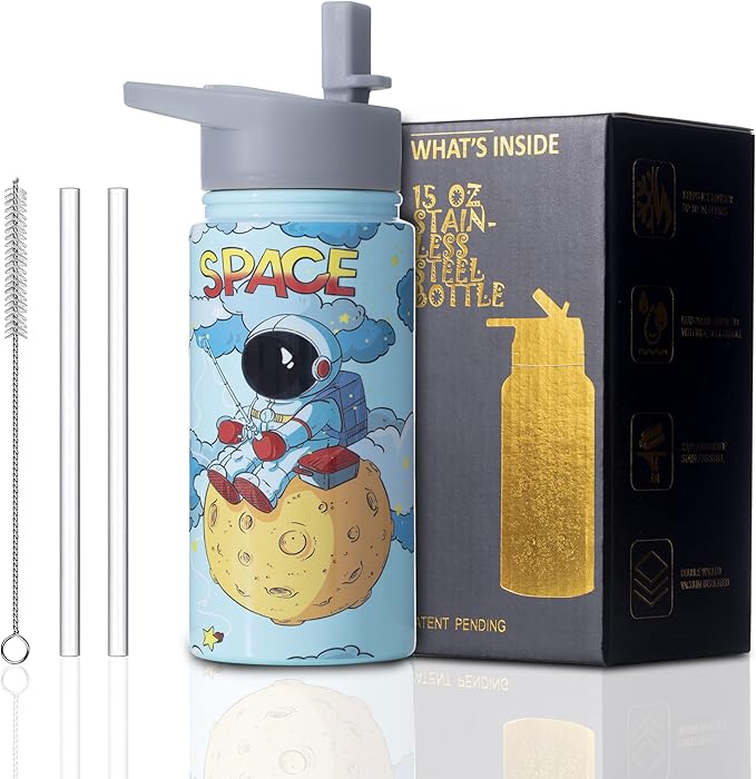 - 【Astronaut-Inspired Water Bottle for Kids】: Especially designed for boys, this 15oz BPA-free water bottle fuels the curiosity and imagination of your little astronauts. Drawing inspiration from the cosmos, every refreshing sip brings them closer to their space adventures.