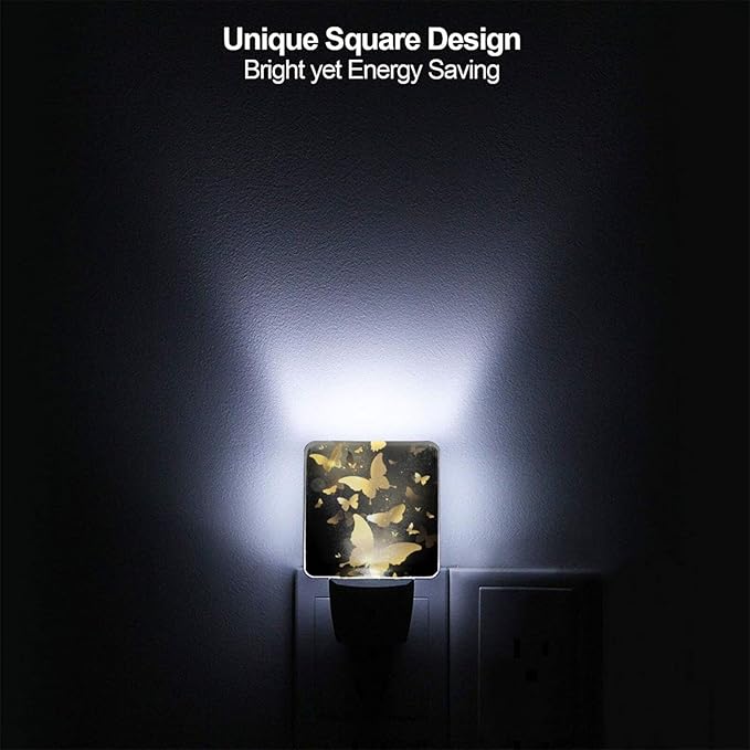 Golden Butterfly Night Light Plug into Wall Decorative Plug in LED Nightlight Auto Sensor Dusk to Dawn Decor Lamp for Kids Girls Bedroom Bathroom Kitchen Hallway Stairs Home