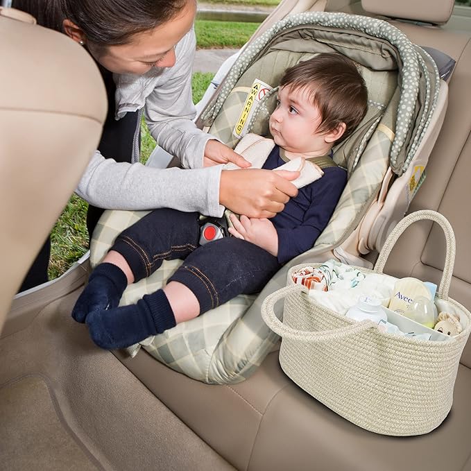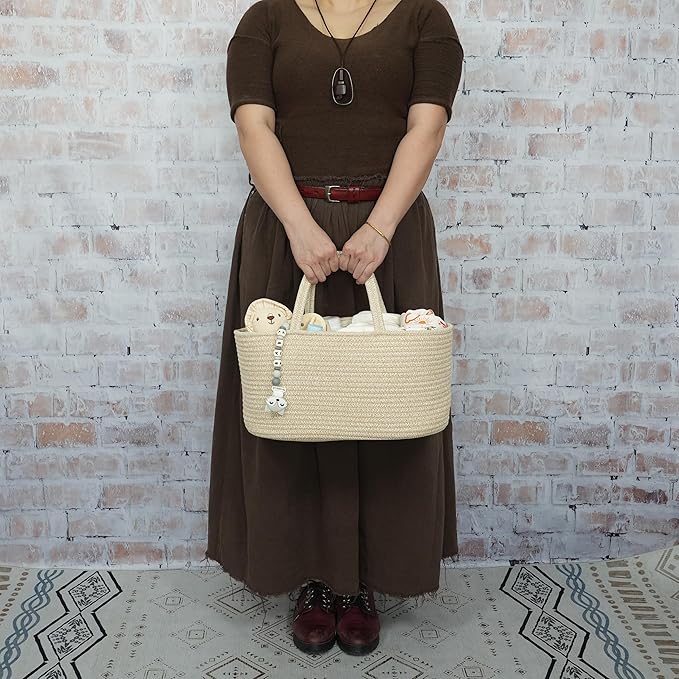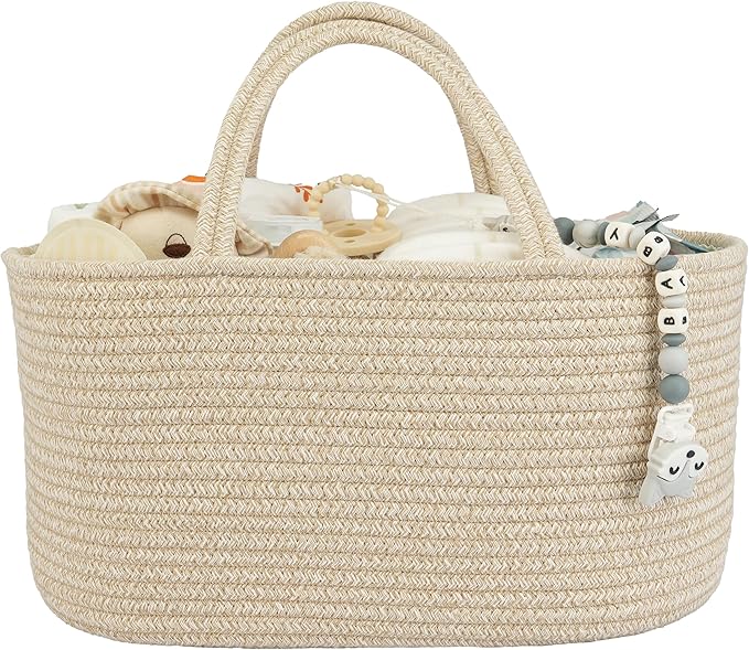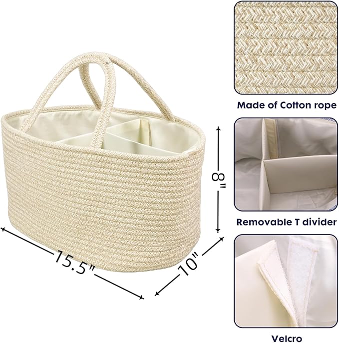 Large Baby Diaper Caddy Organizer for Girl Boy Rope Nursery Storage Bin Basket Portable Holder Tote Bag for Changing Table Car Travel Baby Shower Gifts Oatmeal