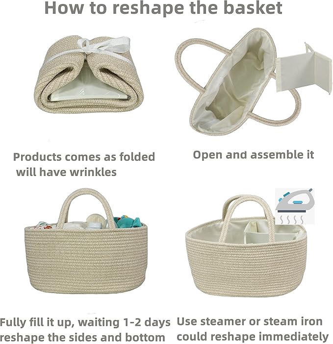 - Great Baby Gifts: This unisex diaper basket organizer is a perfect Newborn gifts as it Looks perfect on dresser top, next to diaper pail, bedside, crib and etc. This diaper basket caddy is not only beautiful but also practical. Could fill it with diapers, wipes or anything else new baby stuff as gift basket. Baby caddy is one of newborn must have items.