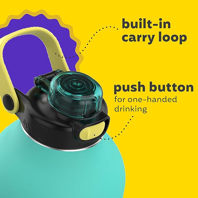 - Easy drinking with just the push of a button; close the cap to help protect spout and straw from dirt and grime