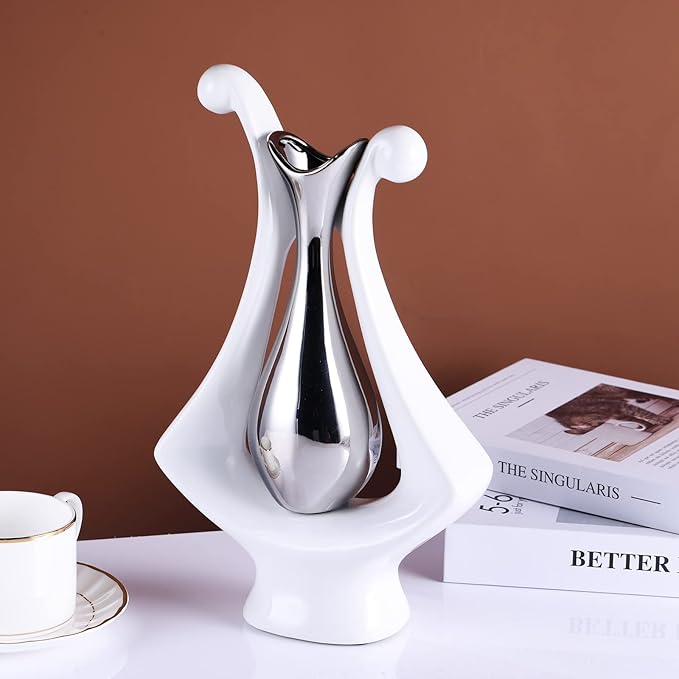 - White Silver Vase, Perfect indoor accents, Add so much warmth to an empty area in your room. Wonderful decorative art crafts for office or home entryway décor, office, hotel, restaurant, dinner parties, wedding planning and other special occasion.(Note: decorative vases can not be filled with water)