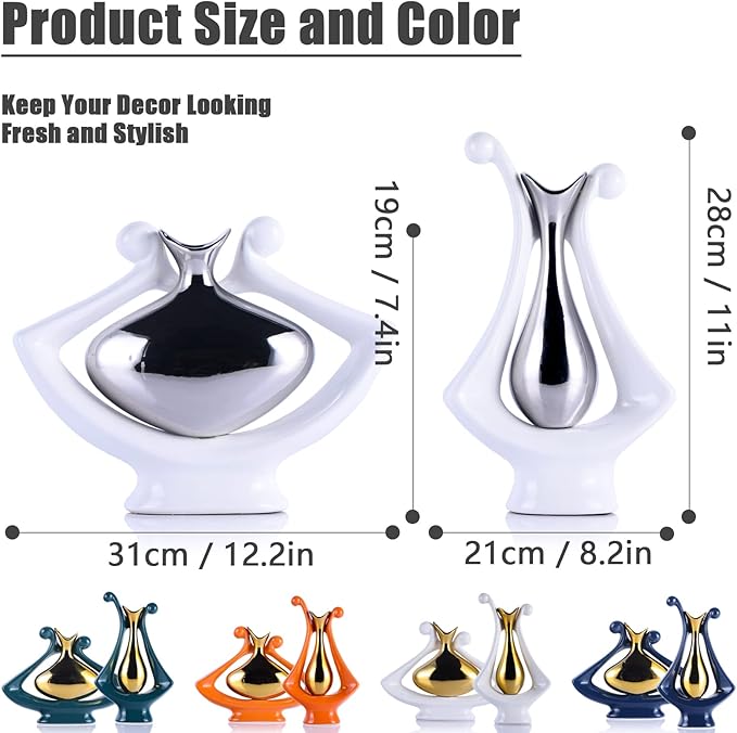 - PERFECT GIFT: The abstract vase figurines are available in silver white, green and gold vases suitable for family, friends, elders, grandmothers, girls as a home decor space or as a delightful gift for weddings, Valentine's Day, Christmas, birthdays and housewarming. Elegant in appearance, this vase will look beautiful no matter where you put it, with a unique statement home decor vase, a rustic vase will wow your friends or family as a great gift, it's a great gift for any holiday.