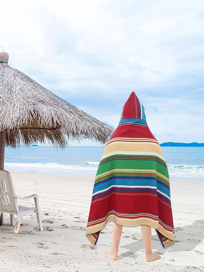Hooded Bath Towel Wrap - 100% Cotton Terry Large Oversized Hooded Kids Towel - Toddler Shower Pool Beach Towel - Super Soft Plush Absorbent Quick Dry Easy Care Gift -30x60- Stripes Multi