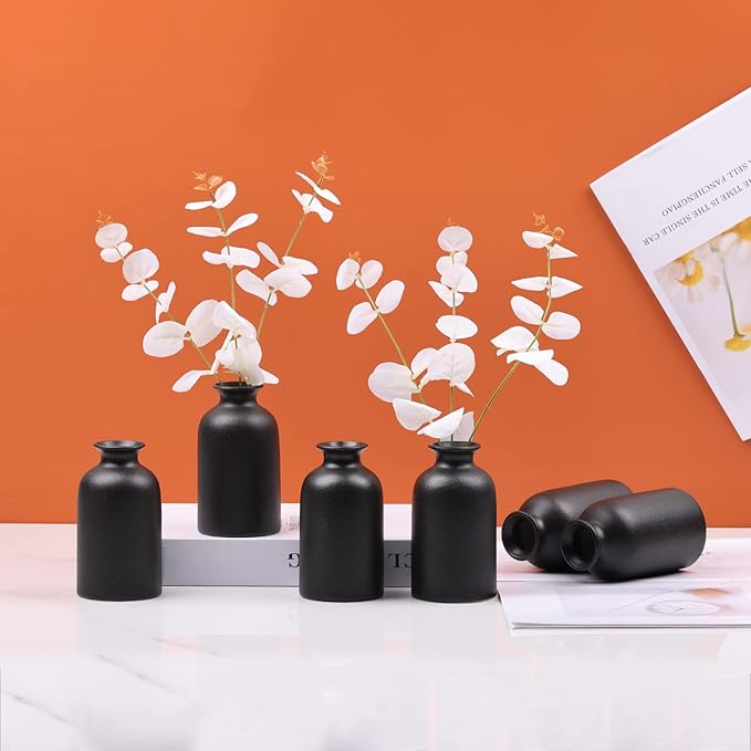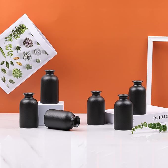- Ceramic Small Vase Decoration—Ceramic small vase 6 pieces set, beautiful curves, small caliber mouth, lovely shape, is the best choice to embellish the light life. Bohemian style, suitable for your home decoration, suitable for office, living room, coffee table, bookshelf, farmhouse. Likewise, you can use the vase for flowers, dried flowers, pampas grass or nothing at all.
