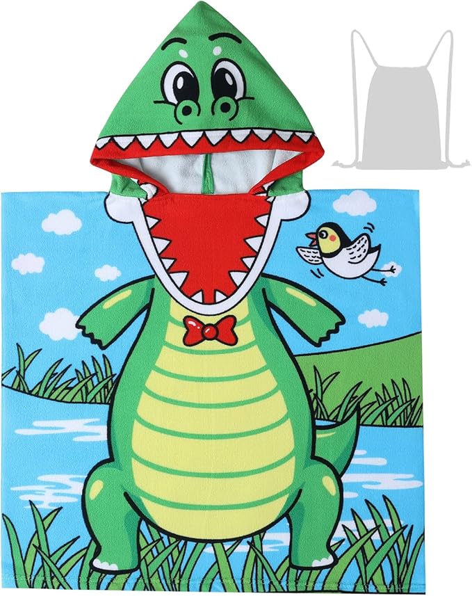 Kids Towels with Hood for Bath Beach Pool Toddler Hooded Towel Poncho Swim Cover-ups with Drawstring Bag (Alligator)